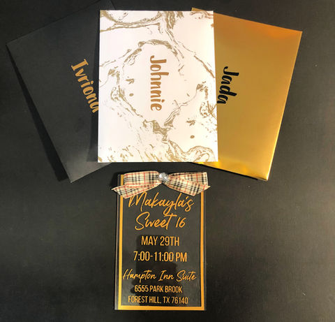 We create unique party packages to fulfill your desired decor goals. Everything from balloon arches, invitations, custom money boxes, centerpieces, gift bags, and so much more.